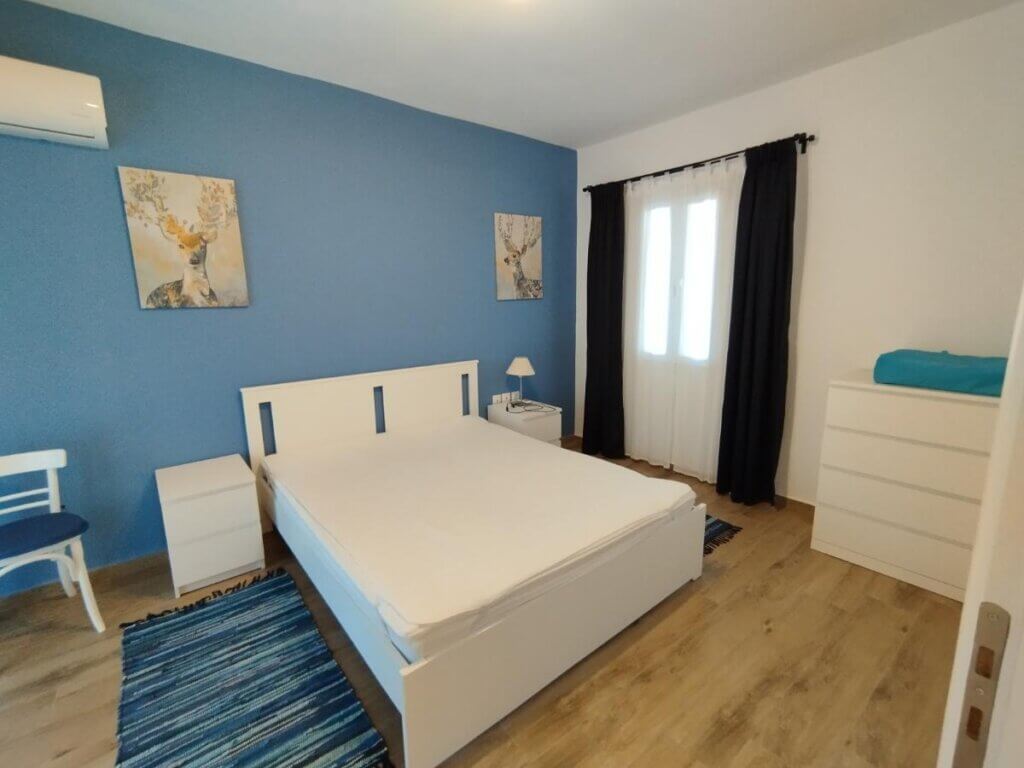 It has air conditioning in all areas, water tank, garden, parking space as well as two verandas overlooking the sea and the islet of Agia Kiriaki.