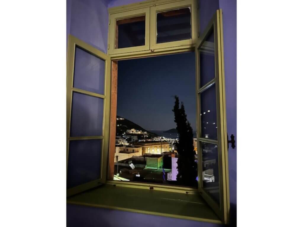 A unique aesthetic neoclassical house for sale with beautiful color tones, attention to detail and based on harmony. It is located in Platanos on a plot of 1246 sq.m. The 324 sq.m house consists of three levels of 108 sq.m each as well as a 25.50 sq.m service room located in the garden. It includes five master bedrooms with their bathrooms and with the following names to separate them: blue, white, lilac, yellow and red suite.The house also has an attic room, kitchen, dining room, living room, storage room, heating and fans. Everything in its design and decoration is neat and special. It functions as a guest house but can also be your holiday home.Ιt now has a road and a large plot within the settlement with a view.It offers a panoramic and beautiful view of the island’s castle, the mills, Pandeli and Platanos.